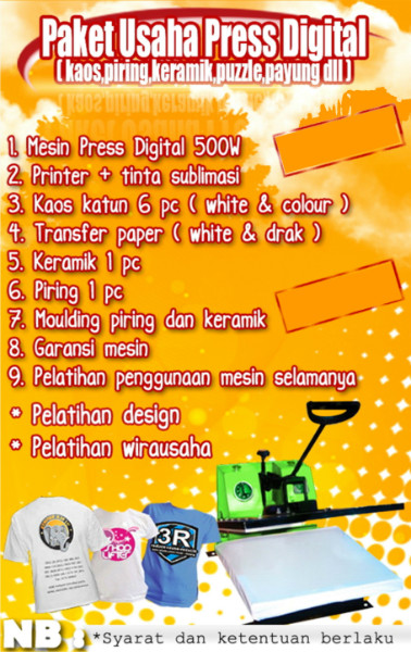 paket usaha press digital, diantaranya: